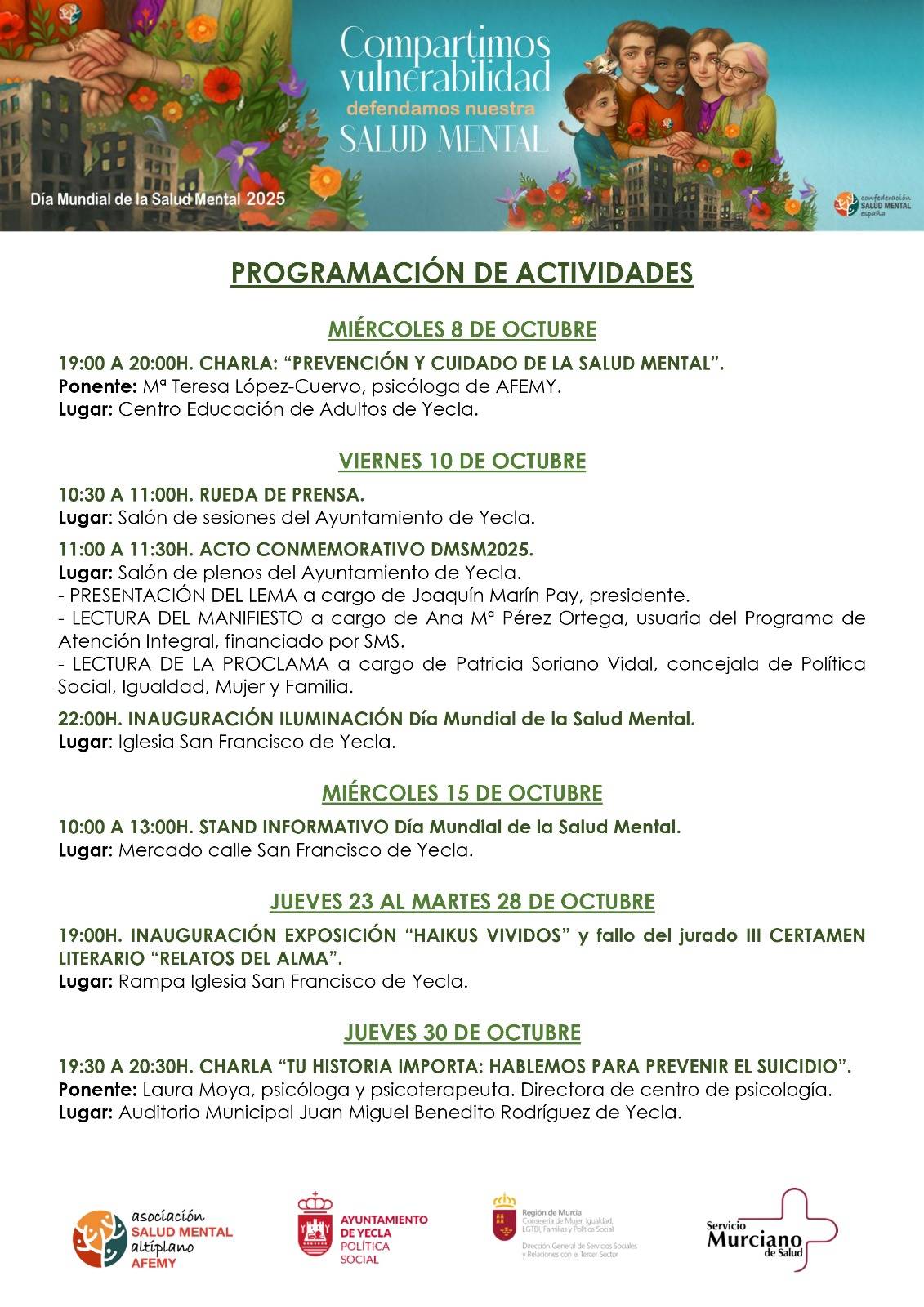 La Asociación Salud Mental Altiplano (AFEMY) presenta la programación de actividades que ha organizado