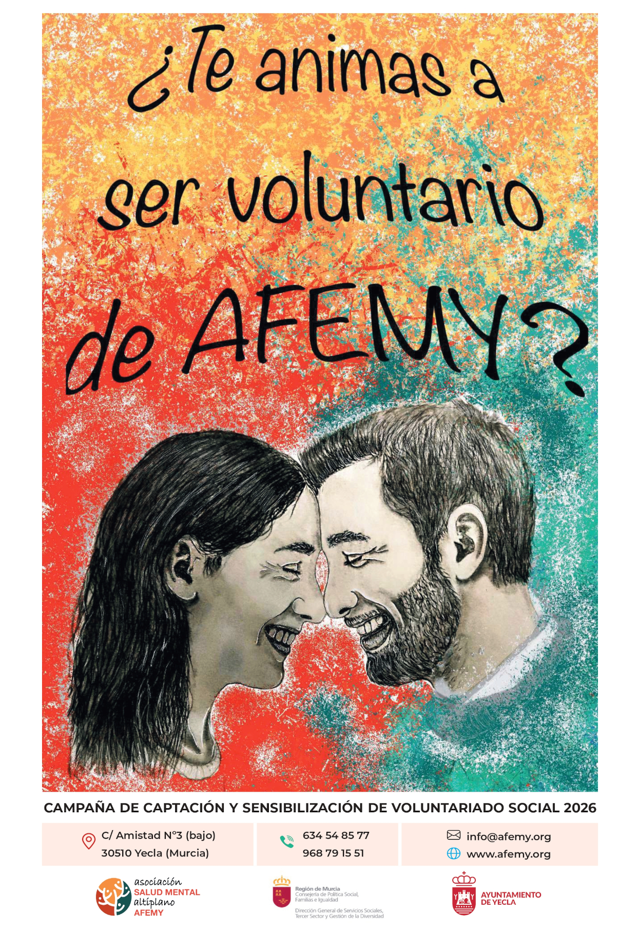 La Asociación de Familiares y personas con Enfermedad Mental de Yecla- Salud Mental Altiplano (AFEMY), convoca el “lll Concurso de Carteles de Voluntariado Social”.